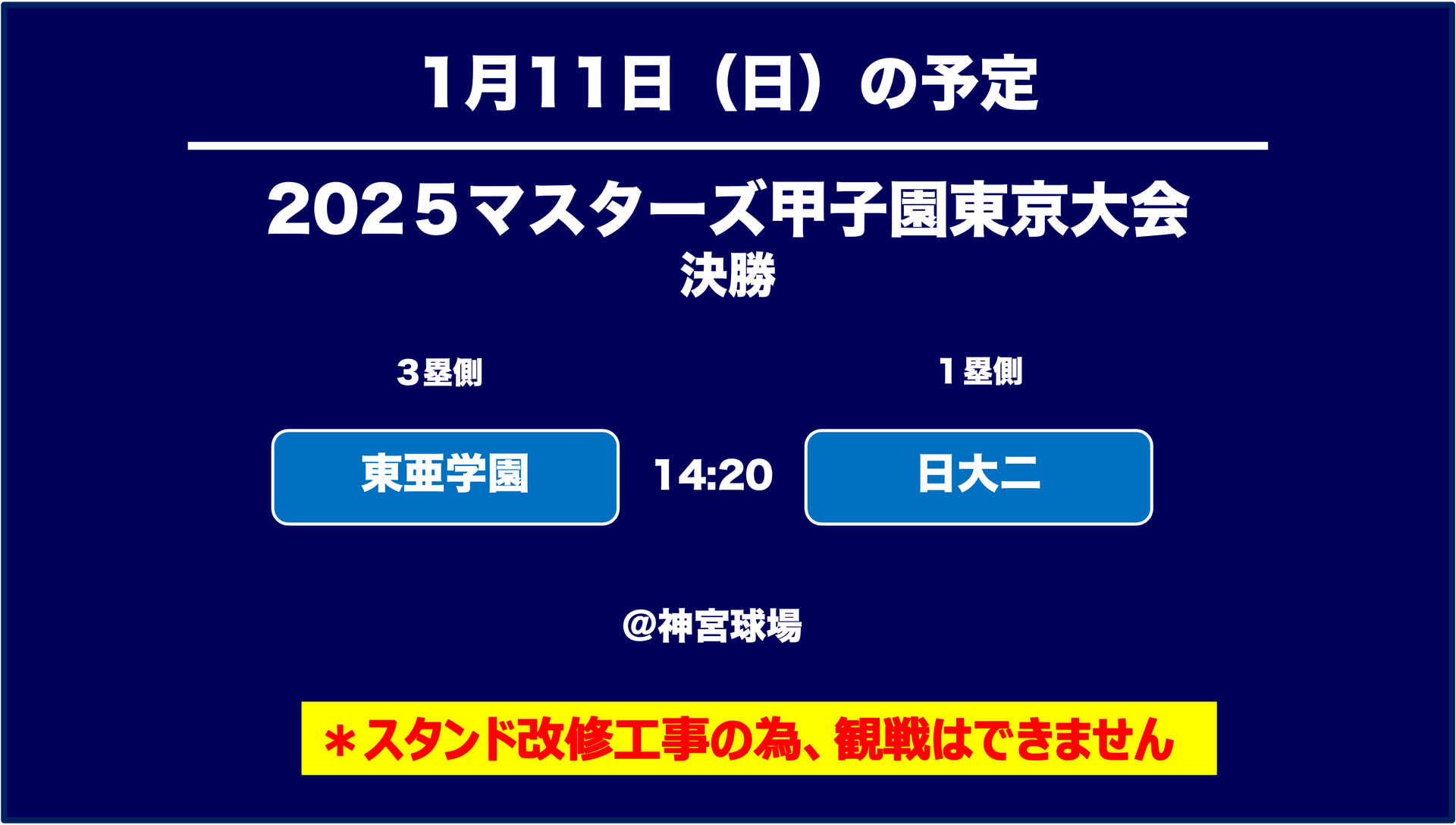 2025マスターズ甲子園東京大会のご案内です。